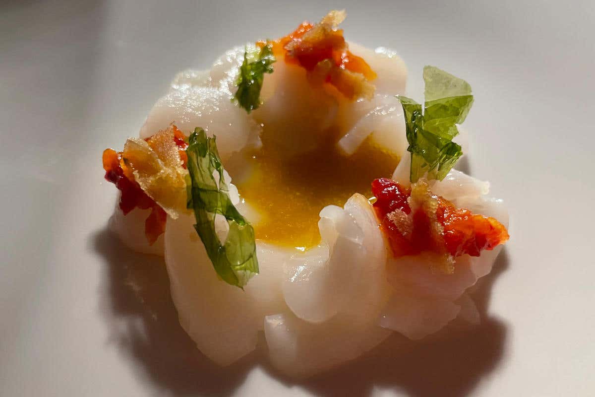 Ai fornelli c’è la mano di Domenico Volta, genovese doc classe ‘88, al timone della cucina del Santamonica dal gennaio 2020, dopo essersi messo alle spalle le esperienze al Ristorante Timo e alla Bottega del Re di Genova, all’Aux Anges a Roanne e al ristorante La Bastide di Lione, dove ha potuto approfondire la conoscenza della cucina francese. Questo lo rende molto sicuro di sè, così da misurarsi anche con la reinterpretazione di piatti tradizionali.