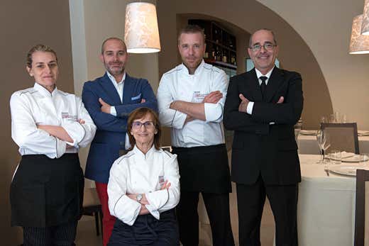 A Viareggio paese, pieno centro, un affresco di Annigoni che ti accoglie, fatto di scampi, triglie, granseole, scorfani e gallinelle, è il mare guizzante, vivo, e il salmastro sul fondo, dove nascono e crescono i viareggini, e oggi è il ristorante Acquasalata, la storia di una famiglia, persone assolutamente normali, ma non banali, piene di passioni per la loro terra, Viareggio, la Versilia, una grande cultura e talento inedito per la tavola, le vele, sogni legati al mare, una vita cadenzata dal movimento delle onde, inesorabile, dolce, ripetuto, senza tempo. Una famiglia che si riunisce, alla solita tavola, la mamma Giovanna (nella foto), una grande cuoca, la brigata formata dalla figlia Laura (nella foto, in basso), anche lei cuoca, la nuora Paola e il figlio Davide all’accoglienza, lo chef Michel Marcucci (nella foto), il maitre Luigi Menichini (in foto). Il timone della famiglia è retto da Giovanna, grande donna e grande cuoca, unica, radicata ai sapori e ai prodotti della sua Versilia, pesce appena pescato, che ogni giorno fa rivivere la poesia sfiorita della pesca lungo la costa della Versilia, attività nobile e fiera di un passato neppure troppo lontano.