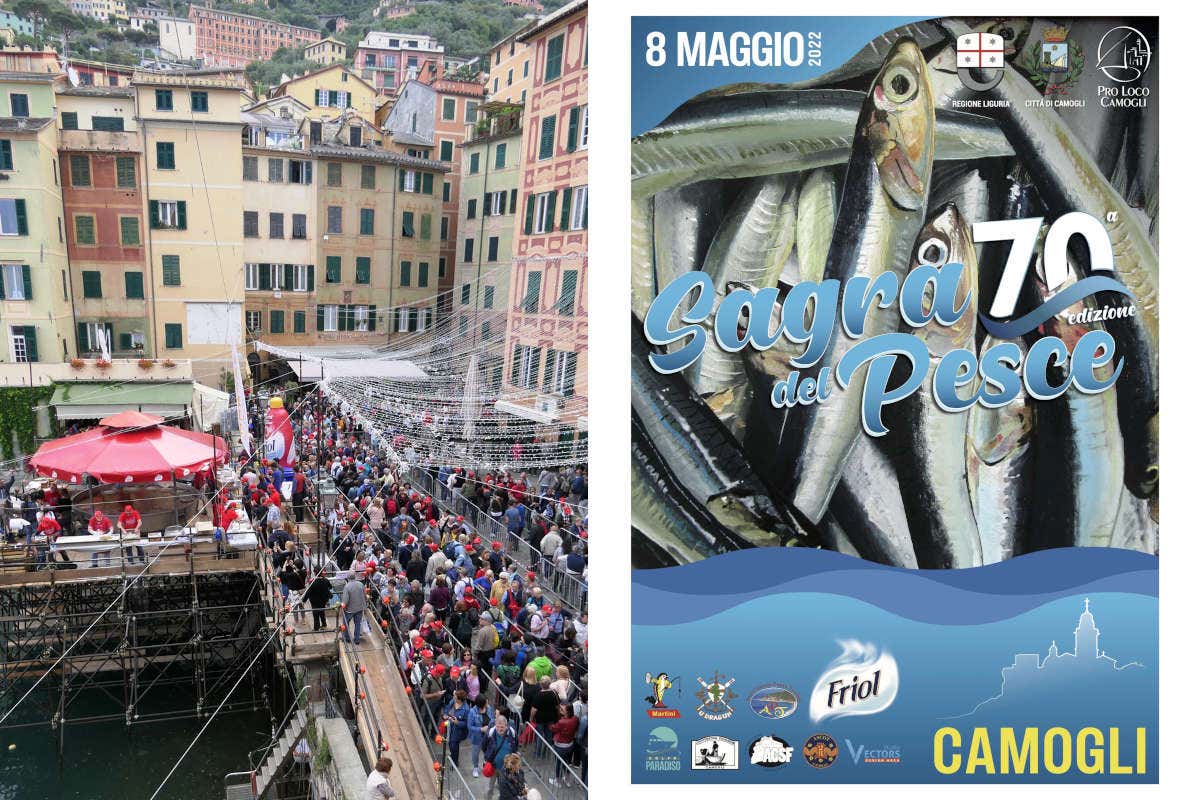 La Sagra del pesce partirà domenica 8 maggio, con la benedizione della padella e del pesce alle ore 10.00, a cui seguirà fino alle 13.00 e dalle 15.00 alle 17.30 la distribuzione del fritto fornito dalla Cooperativa Pescatori Camogli e da Martini & C. Tutti potranno assaggiare una specialità croccante e asciutta, come solo Friol sa fare: questo particolare olio resiste infatti alle alte temperature sino a 230°, senza rilasciare cattivi odori e conservando tutto il sapore originale dei cibi, che rimangono dorati fuori e morbidi dentro.
