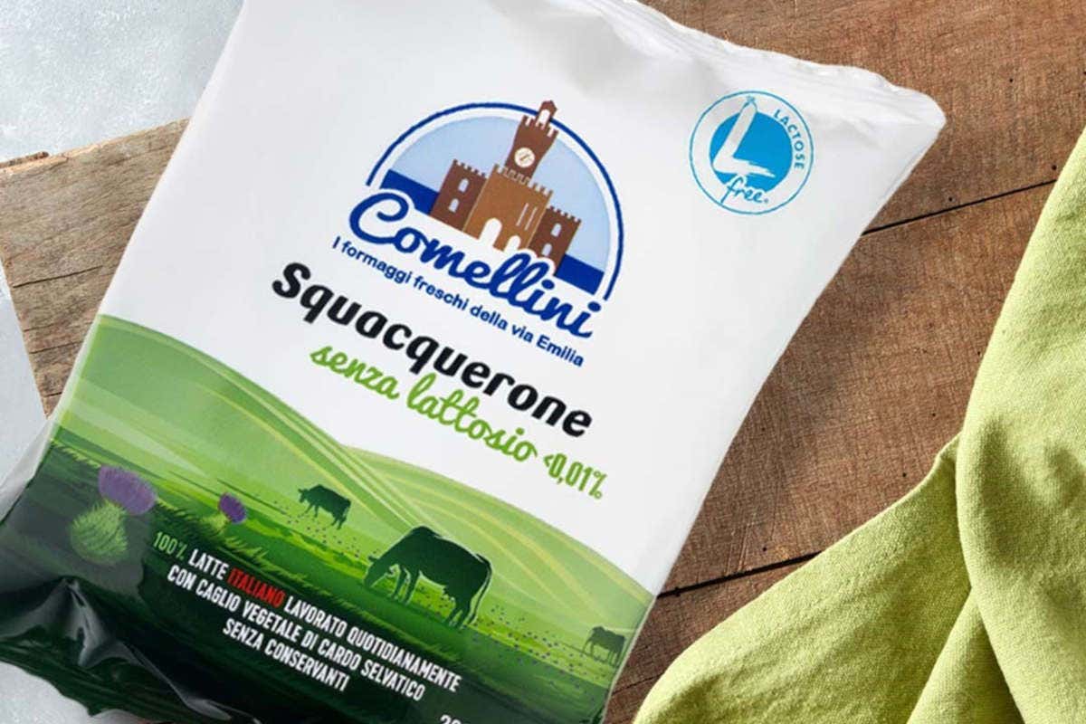 Lo Squacquerone senza lattosio da 280g, prodotto di punta del Caseificio Comellini, ottiene il Marchio Lfree azzurro Lactose-Free, con un contenuto residuo <0,01%. Celebre per la sua "scioglievole" cremosità, lo Squacquerone è realizzato con latte fresco 100% italiano, grazie all’utilizzo di fermenti lattici autoctoni sviluppati internamente al caseificio.
