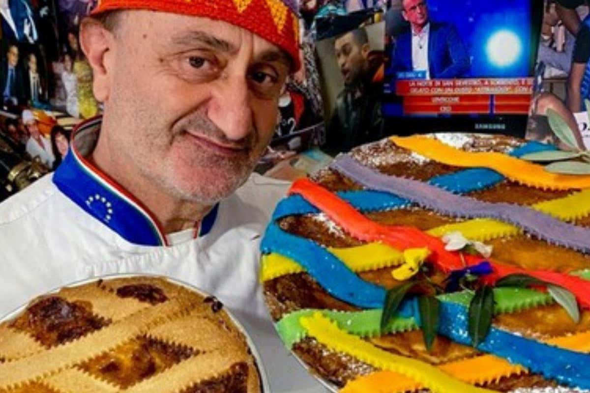 «È la classica pastiera - spiega all'Ansa Cafiero mostrando la prima sfornata - a cui ho aggiunto i colori della bandiera della pace per decorare l'inconfondibile griglia di strisce di pastafrolla». La vendita della Pacestiera contribuirà alla raccolta fondi per acquisto medicinali da spedire in Ucraina organizzata da don Luigi Castiello cappellano Ospedale del Mare di Napoli.