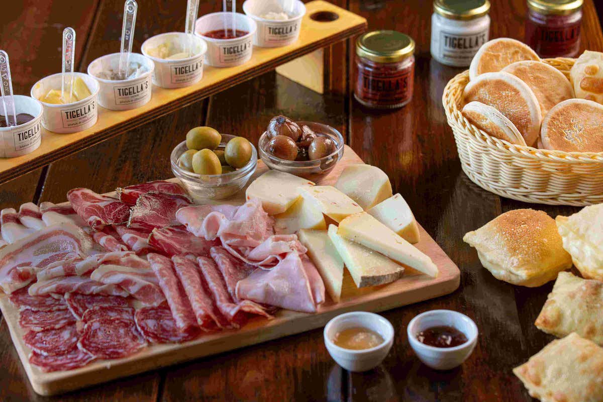 Tigella's propone un nuovo modo di preparare e gustare il cibo della tradizione emiliana, attraverso la scelta attenta dei semplici ingredienti con l'originale formula all you can eat e la continua ricerca di prodotti dell'eccellenza. L'offerta gastronomica punta sulla qualità delle materie prime, con un'attenzione costante alla stagionalità degli ingredienti, per affiancare alle farciture delle antiche ricette una varietà di combinazioni in grado di soddisfare i gusti di tutti. La tigella è un pane tradizionale dell'Emilia Romagna, regione rinomata per la sua ricca tradizione gastronomica. È un tipo di pane rotondo e piatto, cotto su una piastra calda e servito caldo e fragrante, perfetto da farcire con una vasta gamma di gustosi ingredienti: dalla classica tigella con battuta di lardo e parmigiano, a combinazioni più audaci come salmone affumicato e maionese all'aglio, le possibilità sono infinite. Lo gnocco fritto, altra tipicità, viene servito gonfio e dorato, croccante e vuoto all'interno, fatto apposta per essere farcito con salumi e formaggi e degustato in compagnia.