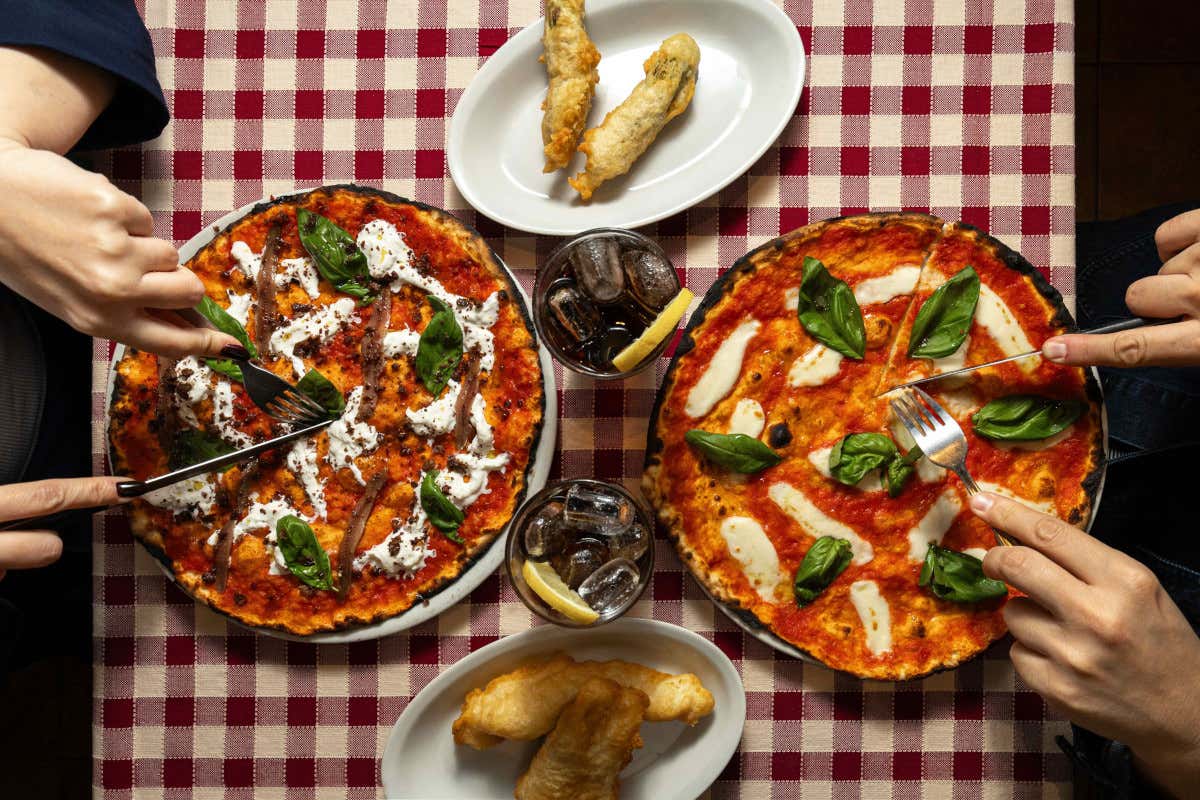 Il menu segue la stessa filosofia: pochi fronzoli, molta sostanza. Si parte con i fritti, tra i quali non mancano supplì e carciofi, sia alla giudia che alla romana. Poi si entra nel vivo con i tonnarelli, tirati a mano ogni giorno nel laboratorio del ristorante e pronti ad accogliere sughi storici come cacio e pepe, carbonara, gricia, amatriciana, oltre a varianti meno battute come quella con coda alla vaccinara o alla ciociara. Ogni giovedì, come da tradizione, gnocchi rigorosamente fatti a mano. A fianco della pasta, c'è la pizza. Sottile, croccante, come vuole la scuola romana, pensata e realizzata da Daniele Di Grazia, chef pizzaiolo e panificatore da tre generazioni. In carta ci sono le classiche rosse e bianche, ma anche proposte più articolate, come la “Zucchina romanesca” con crema di zucchine, fiori di zucca a crudo, zucchine fritte, stracciatella e zest di limone, oppure l'“Alicetta”, con filetti di alice, stracciatella e crumble di olive taggiasche. Ogni dettaglio è curato, a partire dagli ingredienti, selezionati con attenzione tra eccellenze di filiera: Pecorino Romano Dop di Cibaria, salumi e guanciale San Rocco.