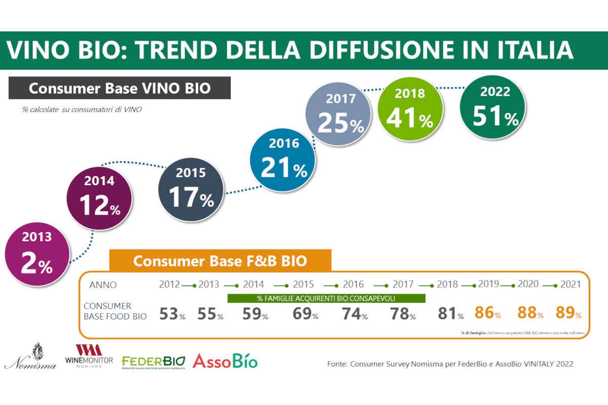 Una consumer base e un interesse da parte dei consumatori per il vino bio che continua ad aumentare sia in Italia sia all’estero, superfici vitate bio in crescita così come le vendite in gdo.