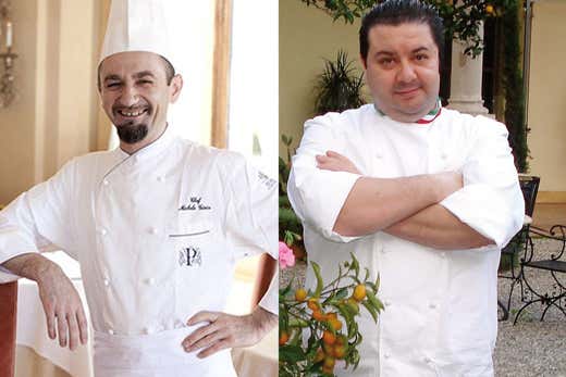 Il prossimo venerdì 17 luglio Michelino Gioia (nella foto, a sinistra) del ristorante The Cesar de La Posta Vecchia Hotel di Ladispoli (Roma), cucinerà al fianco di Massimo Mantarro (nella foto, a destra), cuoco del ristorante Il Principe Cerami al San Domenico Palace di Taormina (Me). I due, protagonisti dell’esclusiva serata gourmet, si sono affermati nel panorama gastronomico italiano grazie alla loro capacità di valorizzare i prodotti del territorio in modo innovativo.