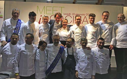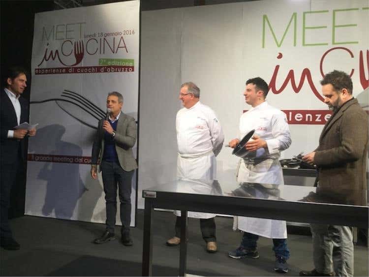 Per il secondo anno “Meet in Cucina” si conferma come opportunità di confronto tra i cuochi dell'Abruzzo. Ospite d'onore Massimo Bottura. Rivoluzione in cucina grazie a una nuova generazione di professionisti e alla Fic. 8 cuochi abruzzesi si sono alternati sul palco, affiancati da esperti e dal secondo chef al mondo