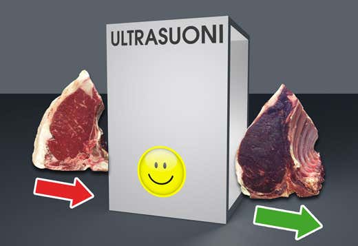 Ma la più grande applicazione degli ultrasuoni è destinata ad un settore per certi versi più complesso, quello della carne. Il progetto, che vedrà coinvolti alcuni nomi importanti dell’industria nazionale e ricercatori dell’Università di Milano, si chiama “Ultra tender Hpu, non-invasive High power ultrasound processing method for meat tenderization”. Si tratta di un sistema per la determinazione del livello qualitativo della carne basato sulla tenerezza, che aiuterà la selezione del processo di “intenerimento”. Un software dedicato selezionerà il taglio con una valutazione finale della carne stessa, cioè della tenerezza. Un percorso di intenerimento della carne attraverso l’utilizzo degli ultrasuoni ad alta potenza, che andrà ad analizzare i contenuti della stessa: grassi, collagene, ecc. Quello che si potrà evidenziare a livello visivo è un effetto simile al cambiamento che avviene nella carne quando diventa più scura a seguito della frollatura. Inoltre l’applicazione di questo metodo, per esempio nel settore degli insaccati, potrebbe diminuire l’uso dei conservanti.