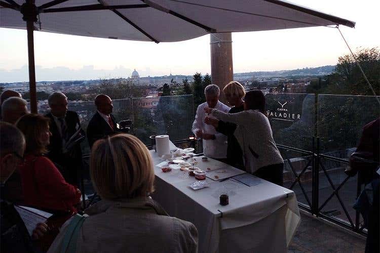 Lo chef Fernando Canales nel suo show cooking, orchestrato sulla terrazza della Casina Valadier, ha spiegato tutti i segreti delle tradizioni alimentari più antiche e delle innovazioni che lo hanno collocato tra i protagonisti della nuova ristorazione basca. Sono stati degustati pintxos dai nomi fantasiosi come la Causa di salsiccia con carbonara di maiale, l'Euskaltxerri (patatina intera ripiena con carne di maiale basco con salsa carbonara), i Ricci di seppia con pomodoro al nero di caviale di alga codium, i Panzerotti ai vapori di granseola di polpo eolio solidificato affumicato, i Mini sandwich di Betisu (panini ripieni di selvaggina con burro alla senape), il Filetto di Baccalà al pil-pil con una salsa simile alla nostra puttanesca e molto altro.