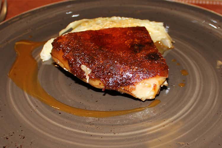 - Raviolo ripieno di pancotto, brodo affumicato e olio al limone