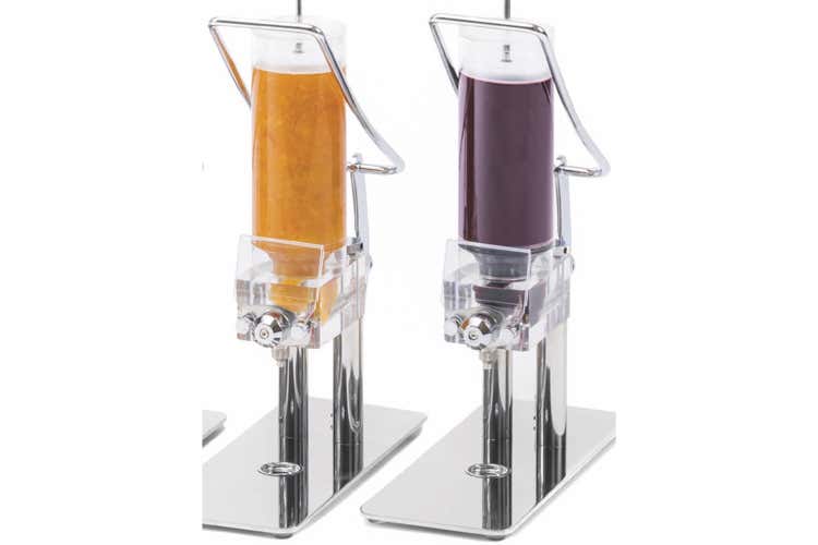 Con i suoi due erogatori, standard o a siringa, Jambee permette di versare la marmellata direttamente nel piatto, nella ciotola, sulle fette biscottate e anche all'interno della brioche. Materiali di alto livello come l'acciaio inox 18/10 ed il metacrilato compongono questo erogatore funzionale e di design, ideale per servire mieli e marmellate di produzione artigianale, permettendo così di soddisfare le esigenze della clientela più esigente che vuole iniziare la giornata assaggiando un prodotto di alto livello.