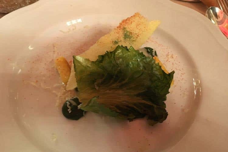 - Primo antipasto curato da Giuseppe Iannotti di Krèsios con: Brodo di katsuobushi di vitello, scampo di Sicilia Don Gambero e radicchio abbinato a Ferrari Perlé bianco riserva 2006, Trentodoc - Ferrari Fratelli Lunelli