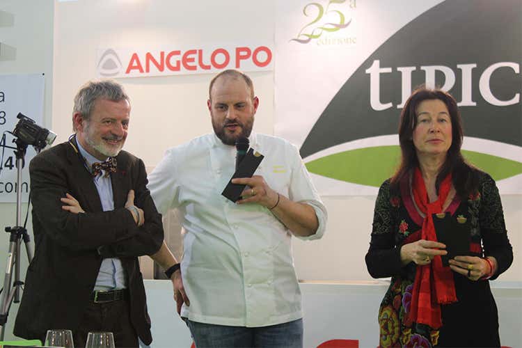 Durante “Tipicità” a Fermo, mentre risponde alle