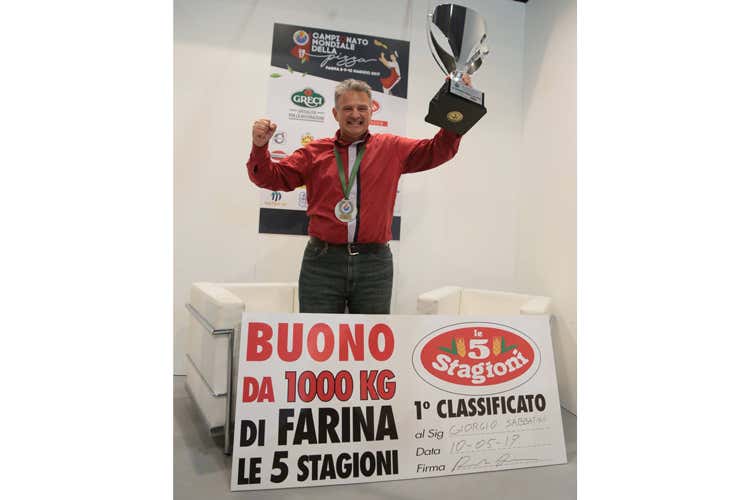 È Giorgio Sabbatini (pizzeria Love it di Milano) il Campione del Mondo di Pizza - Pizza Classica 2017. Ha conquistato i giurati con una Margherita con 10 tipologie di pomodoro. Secondi classificati ex aequo Massimiliano Canizza (pizzeria Sicilia e sapori di Pozzallo, Ragusa) e Franck Guglielmi (pizzeria Dany di Aix en Provence, Francia), terzo Damiano Piazza (della pizzeria “Pizza Planet” di Castel d’Ario, Mantova). Questo il podio del 26° Campionato Mondiale della Pizza, che si è svolto al Palacassa delle Fiere di Parma dall’8 al 10 maggio, organizzato dal magazine Pizza e Pasta Italiana. Ben 729 i concorrenti che si sono sfidati in 995 competizioni individuali, a squadre e in combinata.