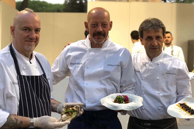 Massimo Viglietti, Gianfranco Pascucci, Sandro Serva (A Vinòforum in scena l’alta cucina tra passato, presente e futuro)