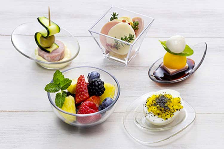 praticità per gli operatori e l’assoluta sicurezza per i consumatori, specialmente quando il servizio si svolge a bordo piscina, presso location balneari o in presenza di bambini. In particolare, i prodotti della gamma Finger Food Tech composta da piattini, coppette e ciotoline, rappresentano la migliore presentazaione per preparazioni sia dolci che salate.