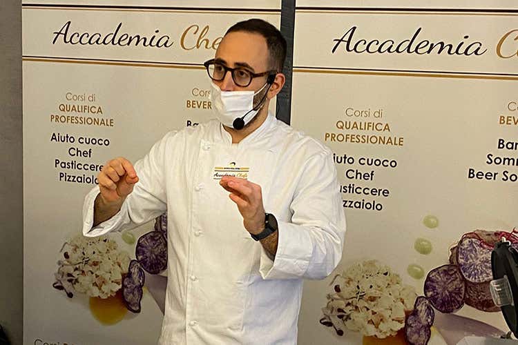 esperienza, Davide ha insegnato agli studenti di Accademia Chefs la tecnica e la metodologia della sua cucina, una combo tra