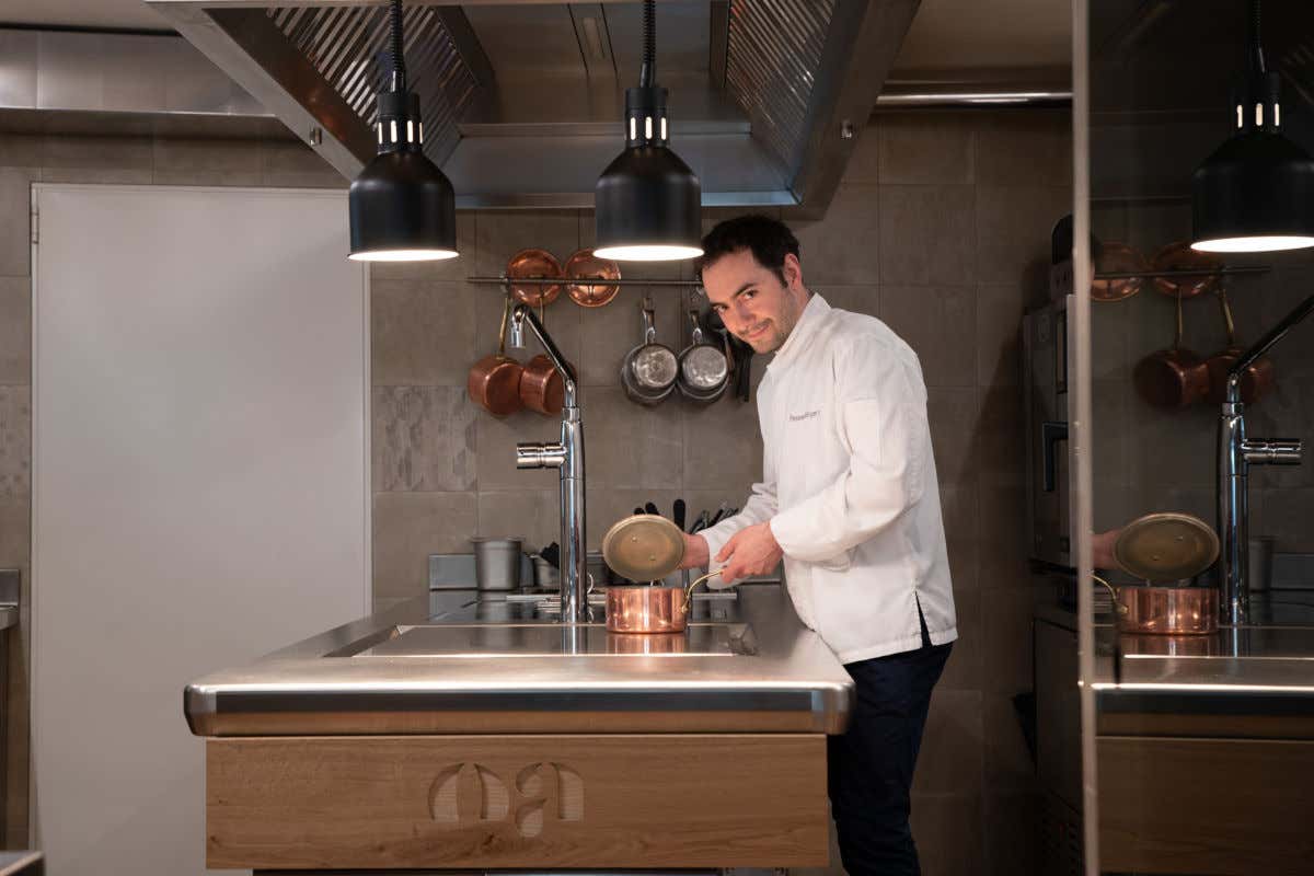Alessandro Bellingeri ai fornelli nella cucina dell'Osteria Acquarol