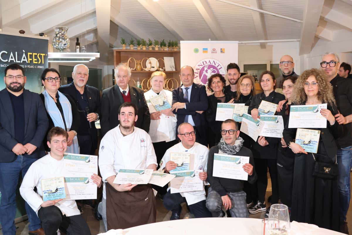 È stata inaugurata ufficialmente l’edizione 2025 del GiroBacalà, iniziativa che, fino al 6 aprile prossimo, accompagnerà gli amanti della buona cucina in giro per i ristoranti alla scoperta della straordinaria tradizione del baccalà e dello stoccafisso. Apertura in grande stile presso il Ristorante Alla Lanterna di Fano con, in gara, 7 chef, 7 ristoranti, 7 magnifiche e diverse interpretazioni di baccalà e stoccafisso. Sul gradino più alto del podio è salito il ristorante "I Due Cigni" di Montecosaro (Macerata). La chef Rosaria Morganti ha stupito tutti con la semplicità di “Baccalà, olio e acciughe”, una vera e propria sinfonia di gusti che ha reso davvero protagonista il baccalà abbinato ad un pesce fresco, come l’acciuga, già presente anche nella preparazione della ricetta codificata dello Stoccafisso all’anconitana.