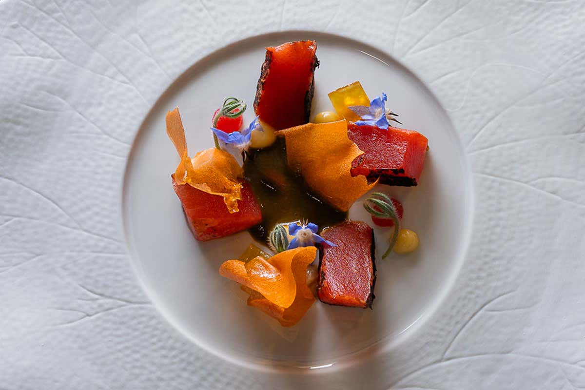 Cromatismo e consistenze in una ricetta di Luca Marchini