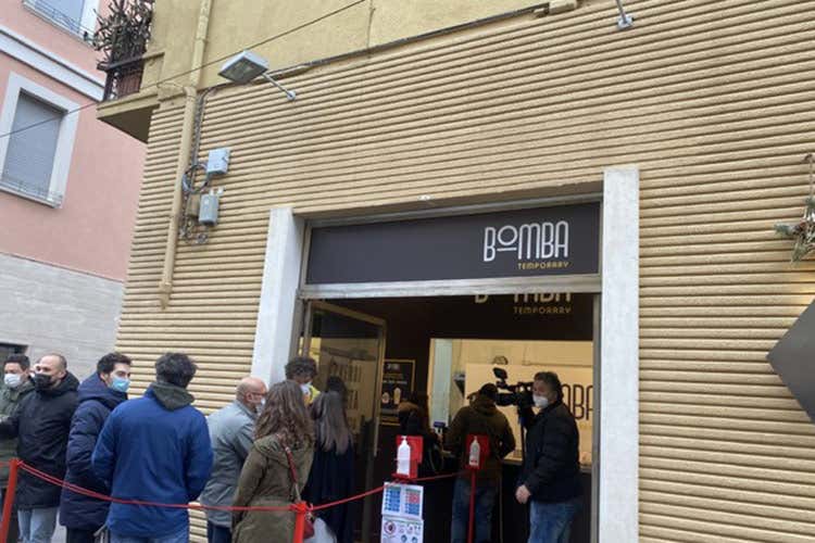 Lo chef abruzzese ha regalato alla città Bomba Temporary dove già dall'apertura decine di persone hanno aspettato pazienti di assaggiare bombe alla crema e cioccolata calda. E non esclude in futuro un ristorante in città.