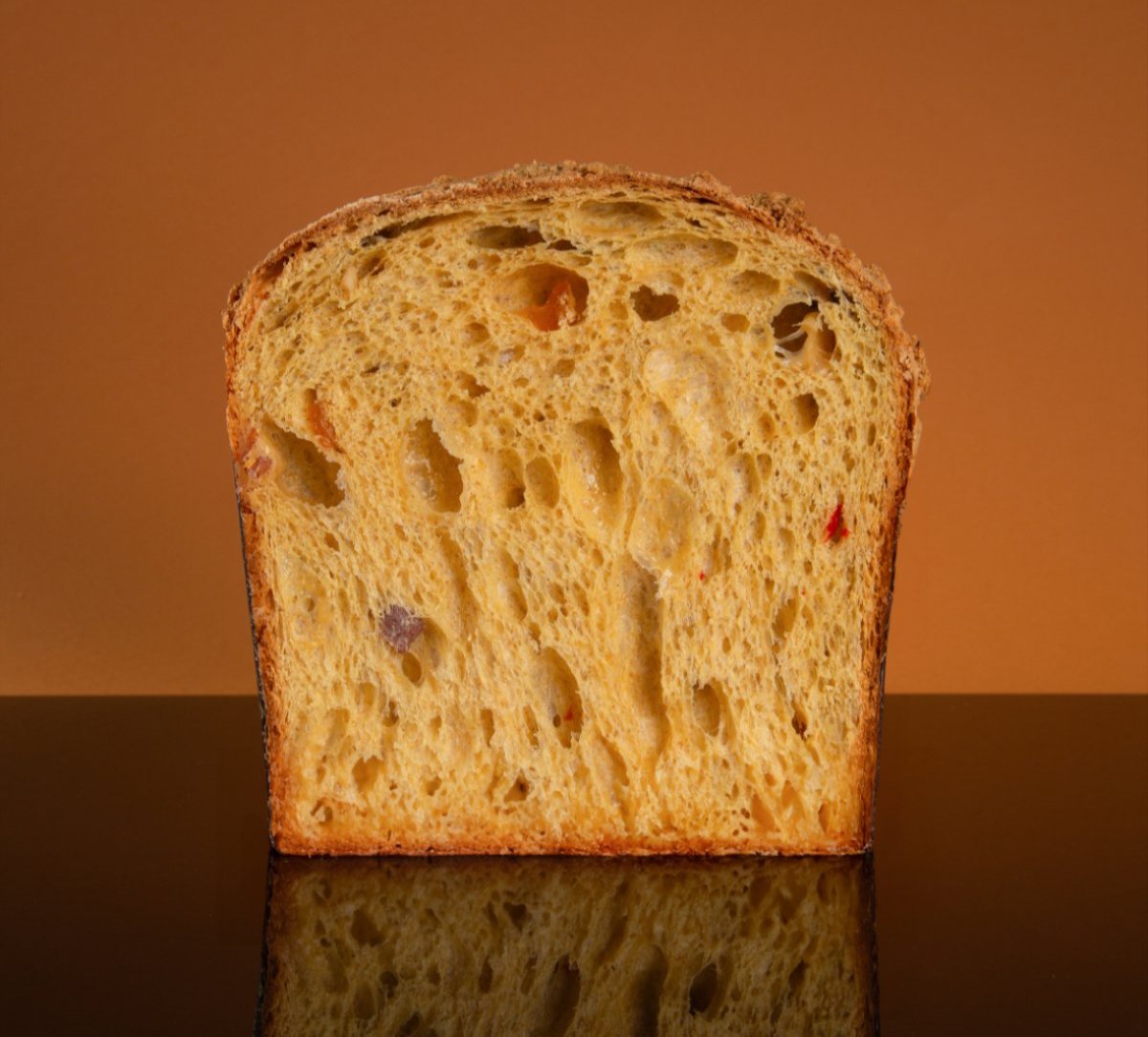 Il duo giovane del Micro Panificio propone un panettone realizzato con Mora, farina integrale dal profilo morbido e profondo, che restituisce al palato sfumature tostate, leggermente mielate. All’interno, i fichi canditi conferiscono un sapore ricco, morbido, con note di caramello e frutta secca. |