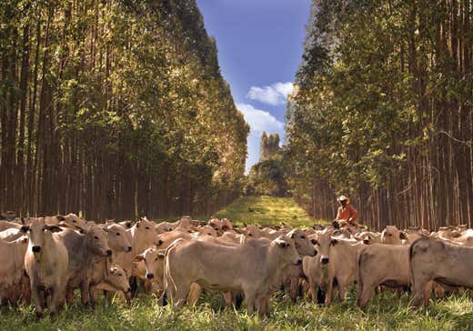 Sono stati piantati 600mila alberi ad alto fusto, pari a circa 300 per ogni bovino allevato, che si estendono su un’area di 650 ettari, dove pascolano liberamente 2mila capi. Il bestiame vive pascolando tra gli alberi in una condizione simile allo stato brado e senza stress. Dopo una decina di anni si è passati a tagliare la prima parte e in contemporanea a ripiantarne altrettanti. Nel mercato c’è molta richiesta di cellulosa e dunque questo progetto si sposa perfettamente con la richiesta. Gli alberi sono stati messi a filare, controllando attentamente la posizione, per non fare ombra. Sono stati orientati verso est-ovest, grazie all’aiuto del Gps e a mano, il che consente all’energia solare la massima fotosintesi.