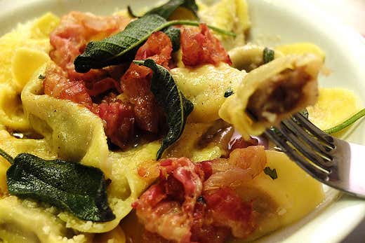 La bergamasca ricorda fiera le sue origini gastronomiche, e soprattutto vanta orgogliosa la paternità della famosa pasta ripiena - ormai apprezzata in tutto il mondo - assicurata da un manoscritto redatto dal notaio Castello Castelli in data 13 maggio 1386. Quel giorno di più di mezzo secolo fa, feste, musiche e danze allietarono la parte alta di Bergamo, e cibarie ovviamente non mancarono, tra le quali questi «taglieri ricolmi di artibotuli, altrimenti detti casoncelli», come riporta l'antico documento. Gli studi sull'origine del famoso raviolo bergamasco sono stati portati avanti dall'esperta di storia della gastronomica nostrana Silvia Tropea Montagnosi, la quale non ha alcun dubbio: paternità bergamasca sia ai casoncelli che alla pasta ripiena in generale, a Bergamo dal Medioevo.