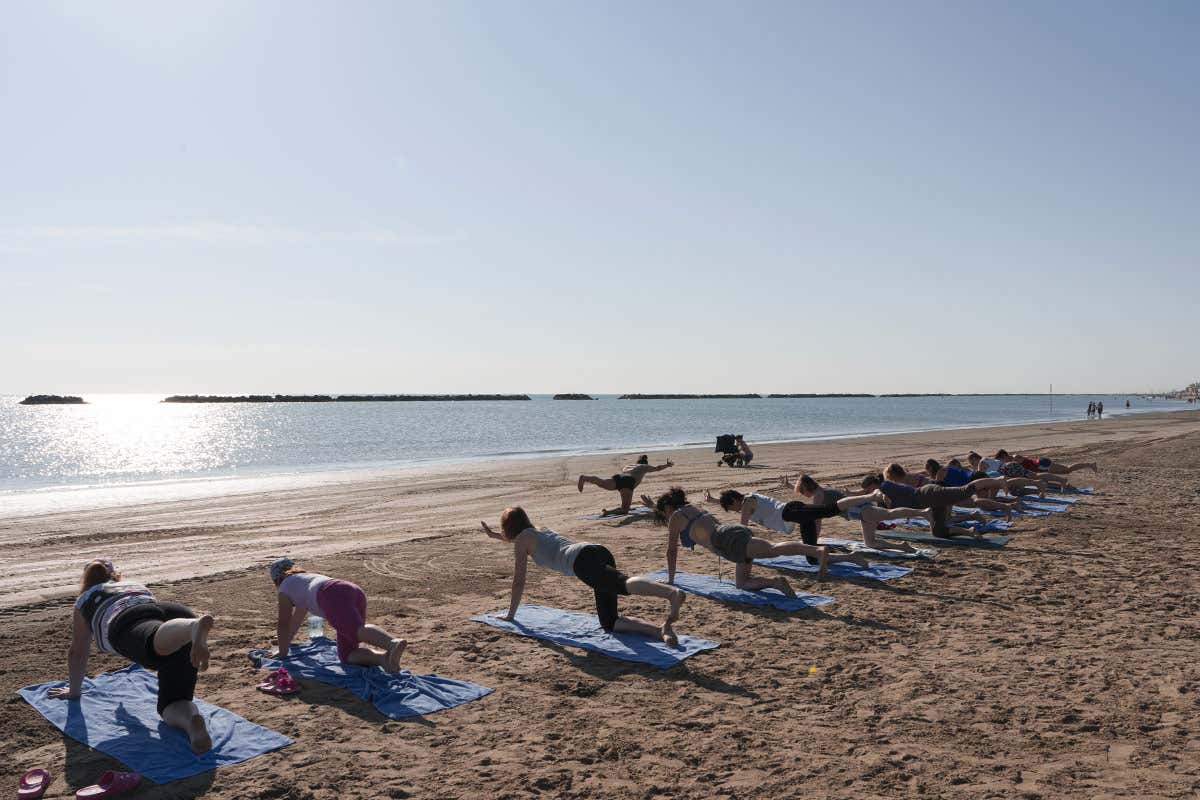 A Cesenatico (Fc) la grande spiaggia si srotola davanti agli occhi degli appassionati di yoga come un lunghissimo tappetino. È qui, al mattino presto, nel