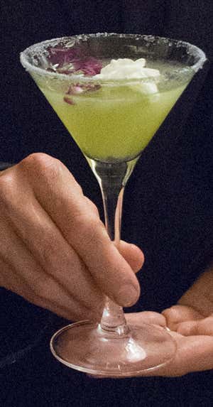 Celery in Bloom, di Thomas Martini barman dell’Harrys Bar di Firenze, ha presentato una ricetta molto floreale in cui hanno primeggiato i fiori edibili. Una ricetta quasi da dopo pasto ben studiata, al limite dell’aperitivo, in cui la vodka Belvedere si univa con il Calvados, ammorbiditi dall’estratto di sedano fresco conferendo alla ricetta una nota aromatica intensa. Interessante e curiosa la crusta intorno al bicchiere con i fiori di decorazione commestibili.
