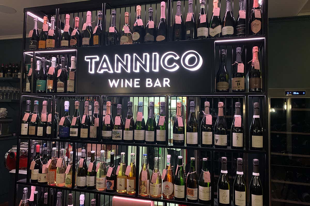 Un'accogliente parete enologica del Tannico Wine Bar di Milano via Savona