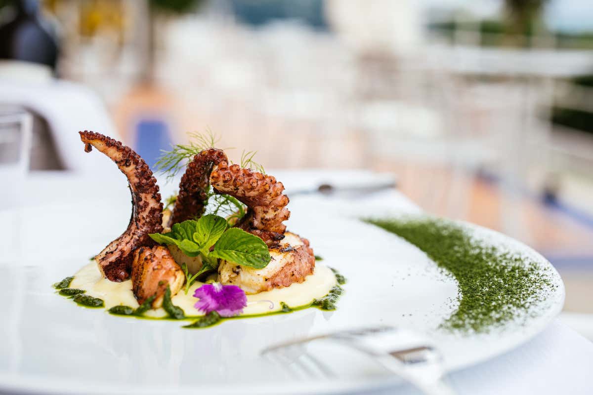 Polipo scottato, crema di patate e dressing alla menta del Ristorante Tonì