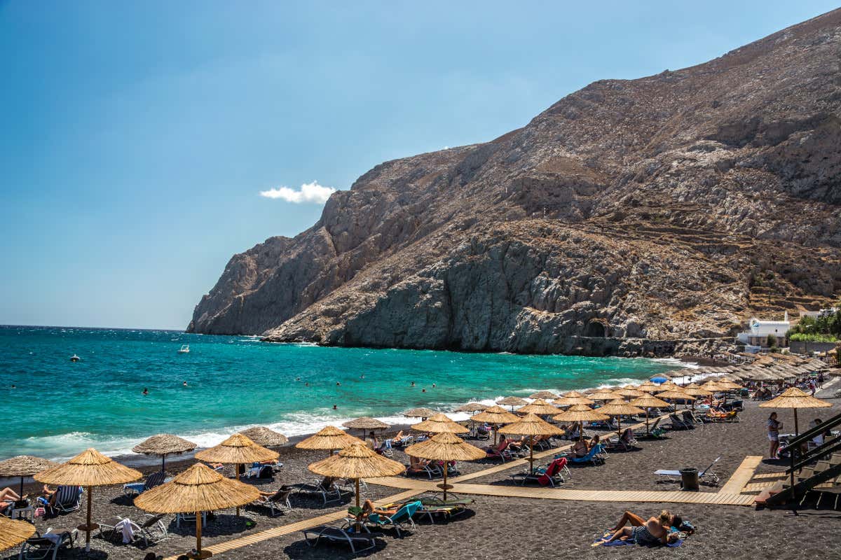 Kamari Beach è una delle spiagge più iconiche di Santorini
