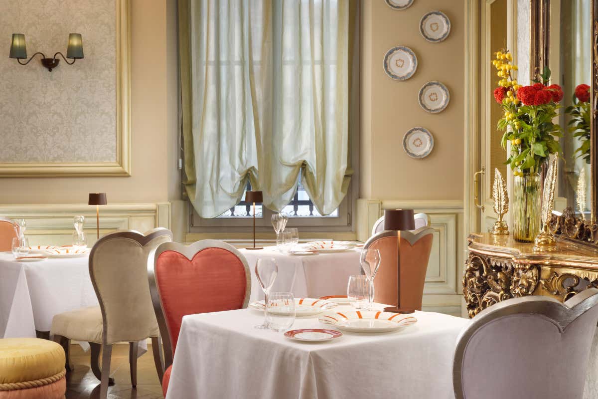 Il menu di aprile propone piatti che combinano influenze regionali e ingredienti stagionali. Tra le proposte: risotto con capperi e caffè, ravioli verdi, crema tiepida di pomodoro, rombo al Grand Marnier con cavoletti di Bruxelles, quiche di spinaci e petto di faraona ai funghi. I dessert includono Pavlova all’arancia, crema con savoiardi e fragoline di bosco, e un assortimento a base di cioccolato. La cucina si inserisce in un ambiente arredato con elementi vintage e contemporanei, in continuità con l’identità visiva del locale. Il design degli interni mescola arredi d’epoca con dettagli cromatici come il fucsia fluo delle sedute, ispirato al rosa shocking di Elsa Schiaparelli. Oltre alla proposta gastronomica, l’Arabesque Cafè offre anche brunch del sabato, colazioni e un cocktail bar aperto al pubblico, con accompagnamento musicale. Lo spazio è pensato come luogo di sosta e incontro, all’interno di un contesto che riflette il dialogo tra cucina e progetto estetico.
