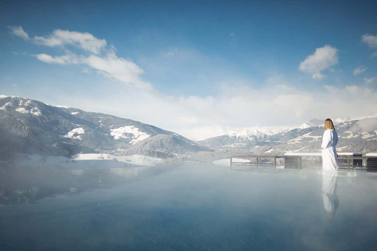 E poi - last but not least - c’è l’hotel Sonnenhof, dal fascino solare e dalla vista super panoramica su paesaggi innevati. La grande piscina a sfioro all’aperto è un ottimo luogo per immergersi nell’acqua tiepida. Mille metri quadri di spa sono dedicati all'arte sapiente del “prendersi cura di sè”, con una grotta tra le rocce di montagna con idromassaggio caldo, altre 6 saune e grotte, numerosi trattamenti di bellezza, 5 aree dedicate a silenzio e riposo, sia all'interno che all'esterno, una spa privata con diversi ed esclusivi trattamenti di coppia.