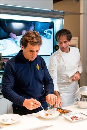 Berton e Oldani, hanno preparato ciascuno la loro ricetta mentre per la terza hanno avuto un aiuto chef molto speciale: a cucinarla, insieme a loro a sei mani, c’era proprio Alex Zanardi, tornato da poco dalle Hawaii, dove si è svolto l’Ironman di Kona. I commenti entusiasti dei presenti sono stati sia per gli accostamenti sorprendenti delle preparazioni che per partecipazione coinvolta di Alex, che nell’assaggiare la ricetta di Oldani ha commentato: «Per uno sportivo rispettare alcune abitudini è uno degli aspetti fondamentali per poi riuscire ad ottenere certi risultati e i dolci sono una cosa che mi concedo raramente. Ma questo è un piatto furbo, ed è la fine del mondo».