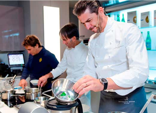 Lo spazio Identità Expo di Fiera Milano è stato scenario di un grande evento all’insegna della passione per il buon cibo, fonte di energia e vero piacere. Grana Padano, da sempre riconosciuto come alimento principe per il valore nutrizionale oltre che per il sapore unico, ha infatti organizzato uno show-cooking eccezionale, che ha avuto come protagonisti tre grandi uomini: l’Ironman Alex Zanardi e gli Chef Andrea Berton e Davide Oldani, insieme per la preparazione di ricette stellate. È stato un susseguirsi di colpi di scena, commentati in diretta “a bordo campo” dal giornalista sportivo Stefano Vegliani.