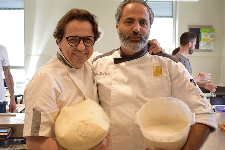 Il corso è stato un successo e i posti disponibili sono terminati subito. I protagonisti assoluti sono stati Ezio Marinato, maestro panificatore e docente di Alma, la scuola internazionale di cucina italiana con sede a Colorno (Pr), da anni consulente e amico di Molino Grassi, e Carlo Di Cristo, professore al dipartimento di Scienze e tecnologie dell’Università del Sannio e panificatore.