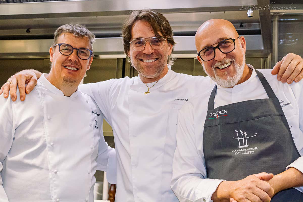 E cominciamo proprio con Gilmozzi, il presidente degli Ambasciatori del Gusto, a fornire i dettagli: qual è l’elemento in comune di Scaglione, Bosco e Gilmozzi che, mixato e servito a cena, possa entusiasmare l’esigente clientela del Lipén? «Ci accomuna la passione innata per il made in Italy - risponde Gilmozzi - e questo va detto come prima cosa. Nel mio piccolo, a Cavalese, mi do da fare non solo con i piatti gourmet ma anche con la pizza, simbolo insostituibile di italianità, una delle preparazioni che ha fatto conoscere il nostro Paese al mondo».