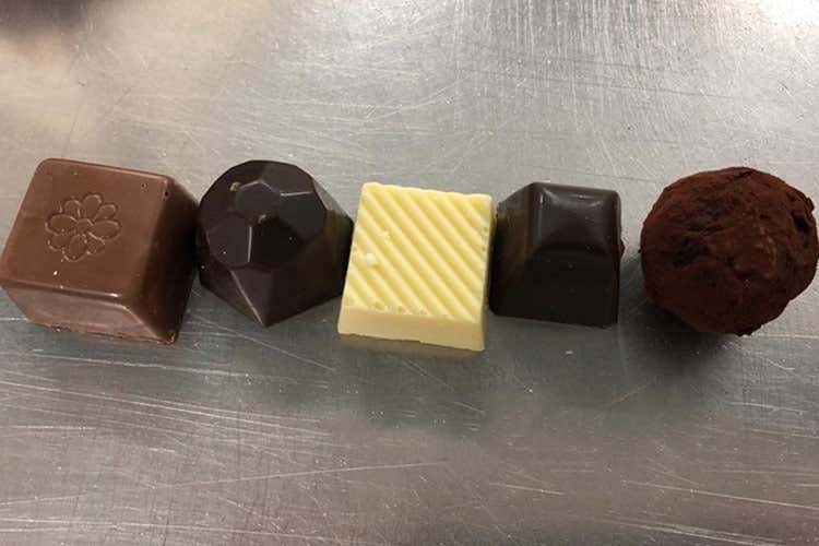 I cinque cioccolatini realizzati dalla sezione Panificazione e Pasticceria dello IAL di Legnano