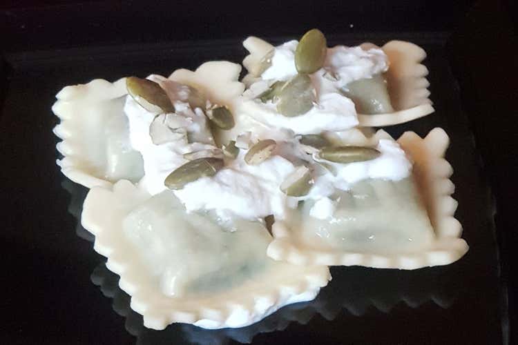 Per condimento: semi di zucca tostati, burro q.b., ricotta q.b.