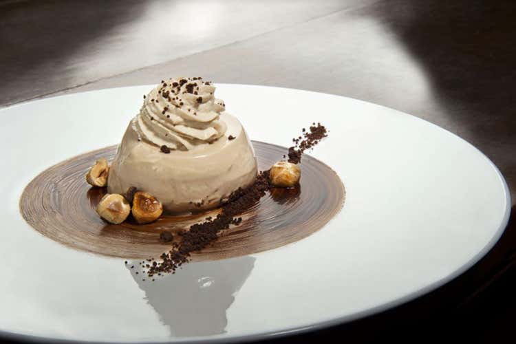 Budino di castagne, crumble al cioccolato e nocciole sabbiate