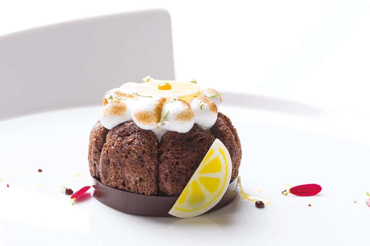 Charlotte Bonjoy al cioccolato, limone e meringa.