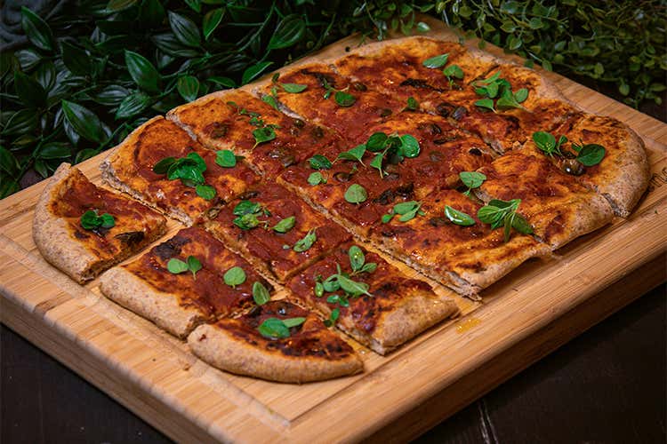 Quando l’impasto sarà omogeneo ed elastico, creare la classica “palla” e inserire in un contenitore chiuso ermeticamente (o coprirla con la pellicola trasparente da cucina) lasciandola lievitare per un’ora e mezza. Tirare poi l’impasto direttamente nella teglia forno bassa #cucinosano con le nocche delle mani e lasciare lievitare stesa e coperta altri 30 minuti. In una padella antiaderente sciogliere i filetti di acciuga con un filo d'olio e aggiungere i capperi. Cuocere qualche istante, aggiungere il pomodoro e quando sarà pronto finire con qualche foglia di basilico. Versare il condimento sulla focaccia e cuocere in forno a 225°C statico per 25 minuti.