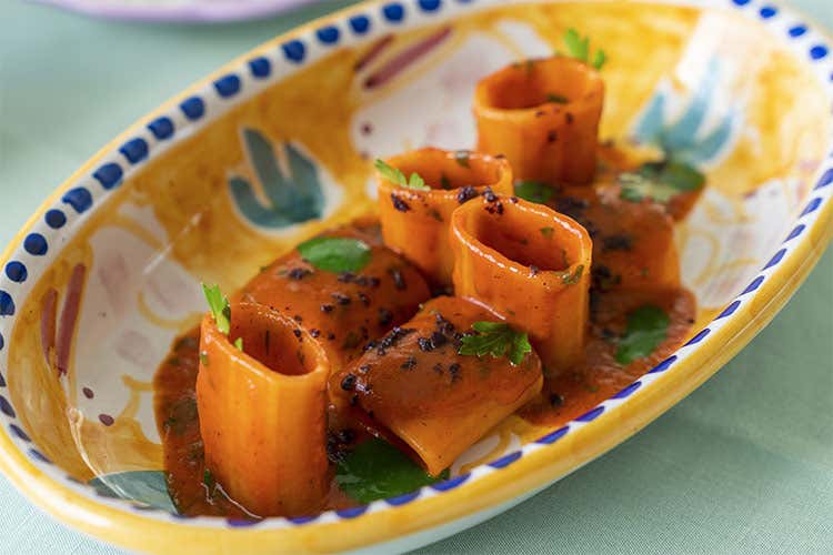 Pasta Da Vinci con ragù di polpetti veraci e pomodori del Piennolo