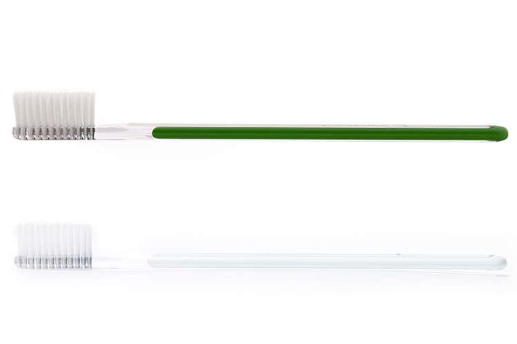 Setole ultrasottili e morbideLe setole presentano un profilo piatto a struttura conica e sono appuntite all’estremità, per arrivare fin sotto il bordo gengivale e consentire la pulizia anche in caso di gengive infiammate e doloranti. A differenza di un normale spazzolino, le setole formano un reticolo fittissimo e morbidissimo, per una pulizia delicata ma profonda.