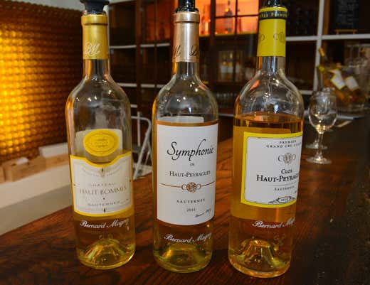 Abbiamo degustato Clos Haut-Peyraguey 2010, oro brillante, generoso, ricco, elegante, un buon equilibrio tra acidità e dolcezza. Albicocca secca, miele, scorza di agrumi candita ed una piacevole nota di botrite. Rimane nel finale un tocco di zenzero. Piacevole. Château Haut Bommes, considerato il fratello minore, é una cuveé, con molti punti in comune al precedente, un assemblaggio simile 90% Sémillon e 10% Sauvignon Blanc, dalla tonalità di colore più chiara, al naso delicato, agrumi e miele, finale persistente con note di pera. Symphonie 2011, giallo chiaro limpido e brillante, fantastiche note di mango ed ananas. Molto proporzionato, facile da bere, rotondo ed attraente. È stato una piacevole scoperta.