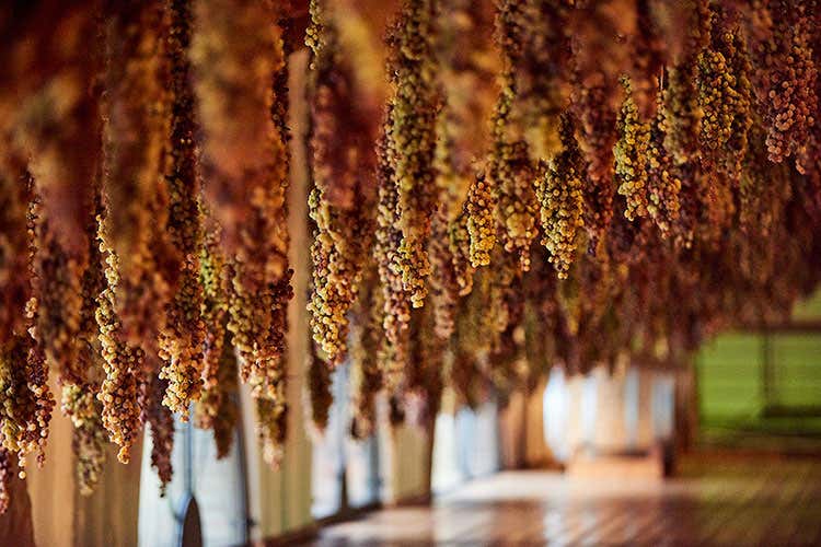 cantina - prevede di appendere le uve di Garganega alle travi dei granai o dei sottotetti ad un cordino di canapa (detta gavetta), in zone arieggiate e poco umide per un periodo variabile dai 30 ai 100 giorni. Questa tecnica rientra nel patrimonio culturale contadino e l’intreccio viene chiamato “picaio”, letteralmente appiccato. Si tratta di una vera e propria arte, tramandata di generazione in generazione: mani esperte intrecciano grappolo dopo grappolo, facendo attenzione che non si siano troppo in contatto tra di loro. Questo metodo di appassimento è il passaggio caratterizzante l’intero processo produttivo. Nel corso dell’appassimento le uve subiscono una disidratazione fisica naturale condizionando le peculiarità organolettiche del vino».