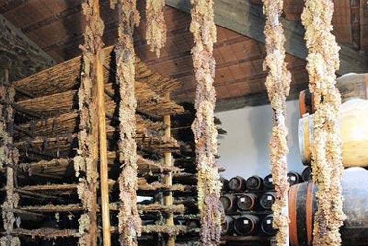 Le uve vengono raccolte molto mature in maniera tassativamente manuale, per non schiacciare gli acini e cercando di selezionare solo quelle più sane, poi i grappoli vengono messi ad asciugare in luoghi asciutti e ventilati per evitare l’insorgere di attacchi fungini nocivi che farebbero marcire i chicchi. Gli antichi romani Plinio e Columella descrivono queste tecniche usate anche sull’isola di Pantelleria con il vitigno Zibibbo e ci sono scritti che raccontano della produzione di vini dolci da uve bianche e rosse in Grecia, in particolare a Santorini, Chio, Corinto utilizzando uve di moscato e malvasia in particolare.