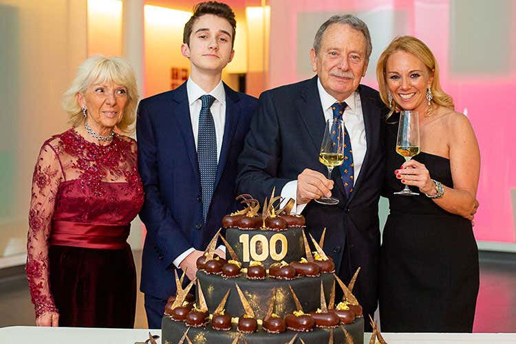 La famiglia Soldati con la torta per celebrare i 100 anni de La Scolca