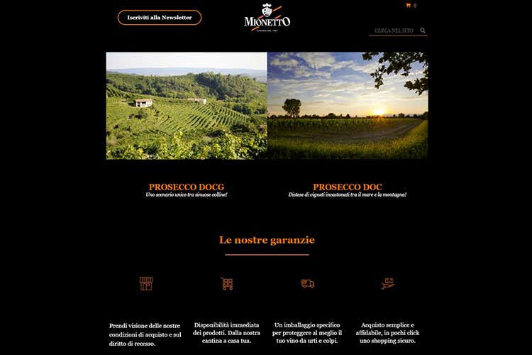 L'Home page dell'e-shop di Mionetto - Col nuovo e-shop di Mionetto Prosecco Docg a casa con un click